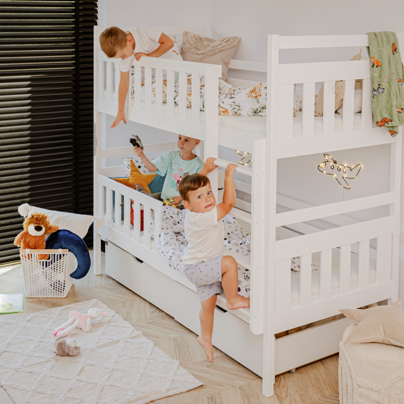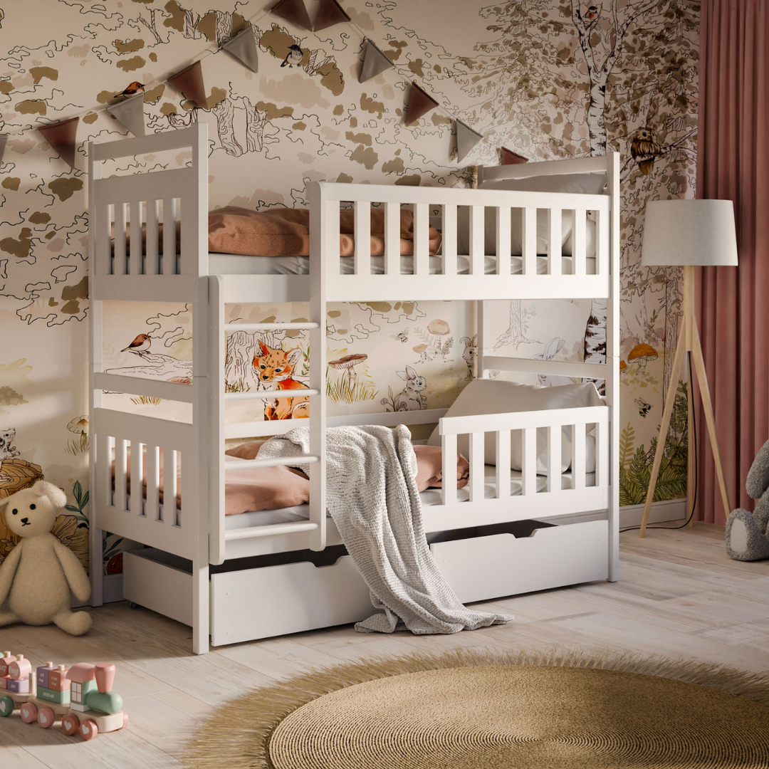 Vit våningssäng med förvaring, Misty 90×200 cm