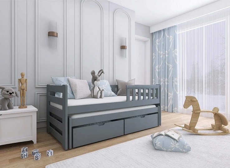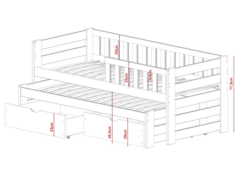 En fantastiskt fin barnsäng med en praktisk extrasäng undertill som du enkelt tar fram vid behov. Perfekt som en syskonsäng eller om en kompis vill sova över.