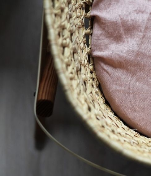 Bordslampan är gjord i bokträ och textilen på lampskärmen är gjord i 100 % bomull.
