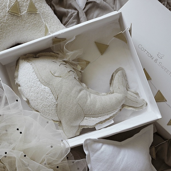 Alla barn älskar denna vackra och dekorativa dubbelsidiga mobil i form av ett gulligt val. Charmig i sin enkelhet och idealisk för barnrumsinredningen.