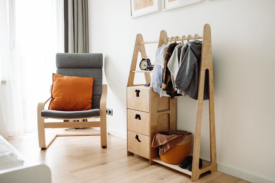 Duck Woodworks, garderob klädstång med lådor Clothes, natur