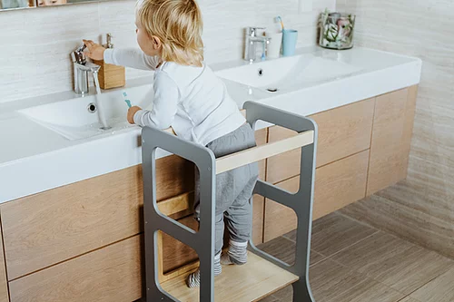 Hjälper till när barnet ska borsta tänderna, tvätta händerna, assistera föräldrarna vid matlagning eller annan aktivitet dit minstingen inte riktigt når upp.