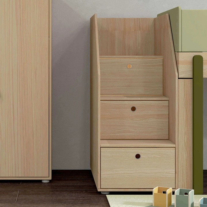 Trappan har en unik inbyggd förvaring. Perfekta att förvara leksaker eller sängkläder.