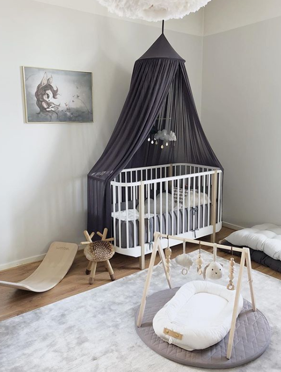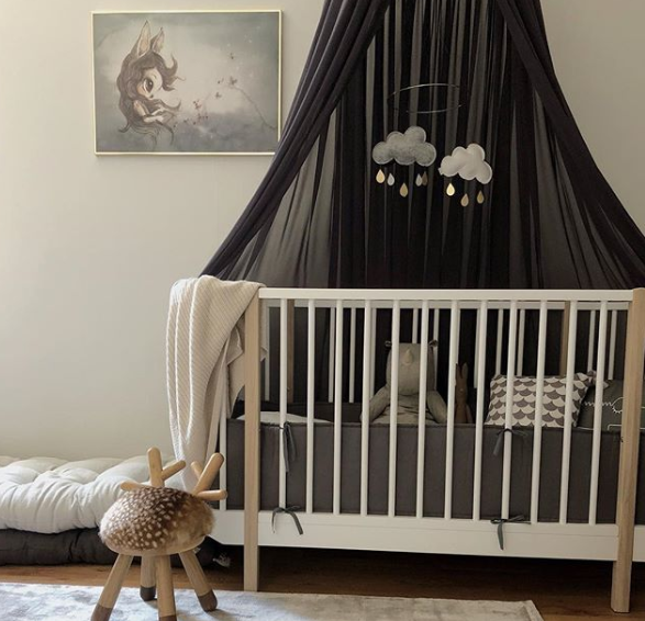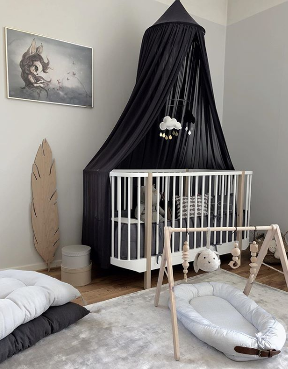 Grafit sänghimmel till barnrummet med ljusslinga, Cotton & Sweets