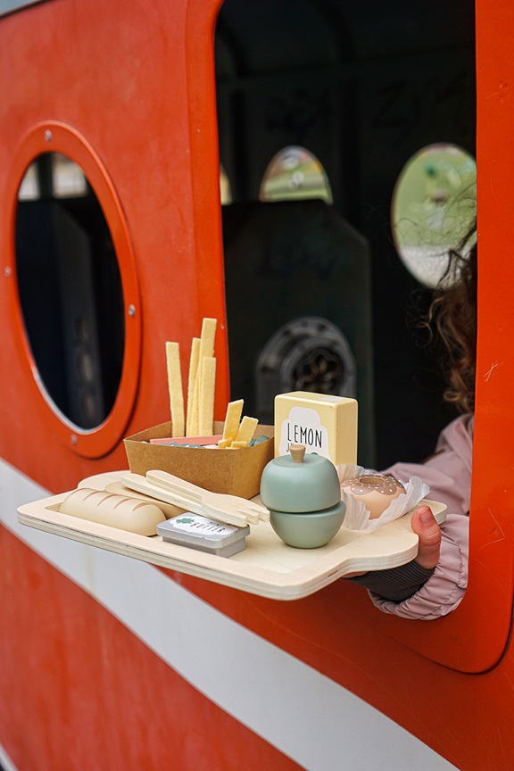 En smaskig matbricka med massa godsaker från svenska JaBaDaBaDo! Perfekt för den hungrige kocken som vill utveckla sin kreativitet!Matbrickan innehåller följande:1 serveringsbricka1 juice1 äpple med kardborrband (delbar)1 tråg med 9 pommes1 munk1 baguette med kardborrban (delbar)1 paket smör1 kniv & 1 gaffel2 apelsinskivor2 salladsblad2 gurkskivor2 korvarKombinera gärna med andra produkter…