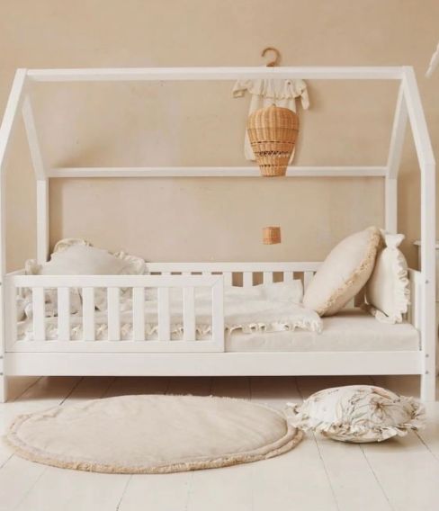 Sängen har smarta stödbrädor på bägge sidor som skyddar barnet från att rulla ur sängen.
