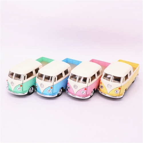 En charmig och fin leksaksbil i metall som ditt barn kommer att ha mycket roligt med. Byggd efter Volkswagens populära ?Buss Cab Pickup ? från 1963 och en riktig liten racer som åker av sig själv när du dragit den bakåt.