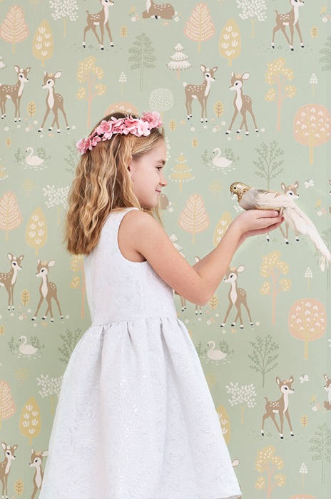 Majvillan, tapet till barnrummet Golden woods, dusty green