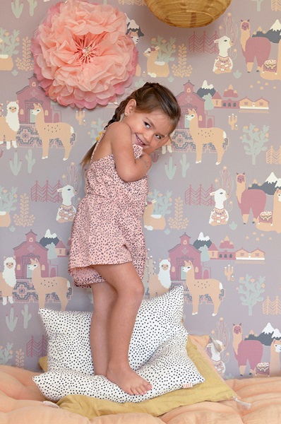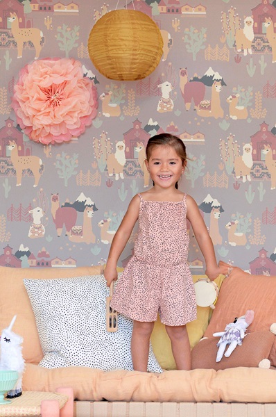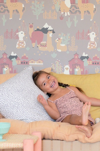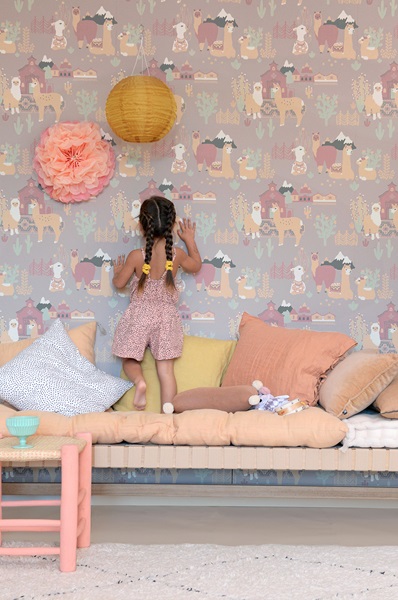 Majvillan, tapet till barnrummet Lama village, evening lilac