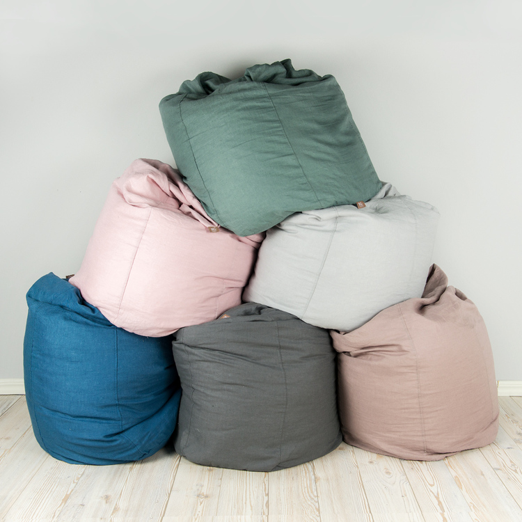 Yttertyget är gjort av 100 % stentvättat linne vilket gör att sittpuffen enkelt formar sig tillsammans med den mycket rörliga fyllningen. Du kommer alltid att kunna hitta er favoritposition i denna saccosäck.