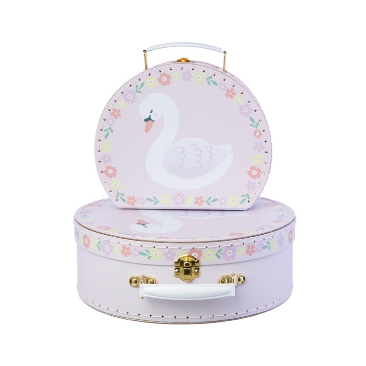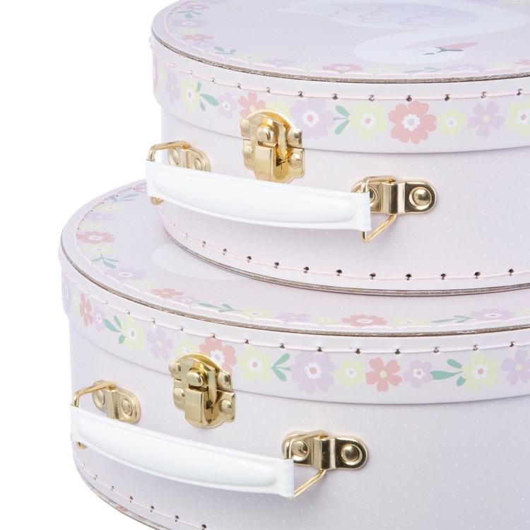 Underbara och fina praktiska förvaringslådor från brittiska Sass&Belle i form av fina koffertar med svanmotiv på. Perfekta till att förvara ditt barns småsaker, som pennor eller samlarbilder.
