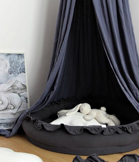 En mycket charmig och vacker beige sänghimmel tillverkad av högkvalitativ bomull. Designad i en enkel form och i en typisk skandinavisk stil. I varje rum som denna används kommer en sagokänsla att spridas. Perfekt för att inreda barnrummet på ett bra sätt. Sänghimmeln är dessutom förberedd med en praktisk anordning i mitten för att kunna hänga favoritsakerna.