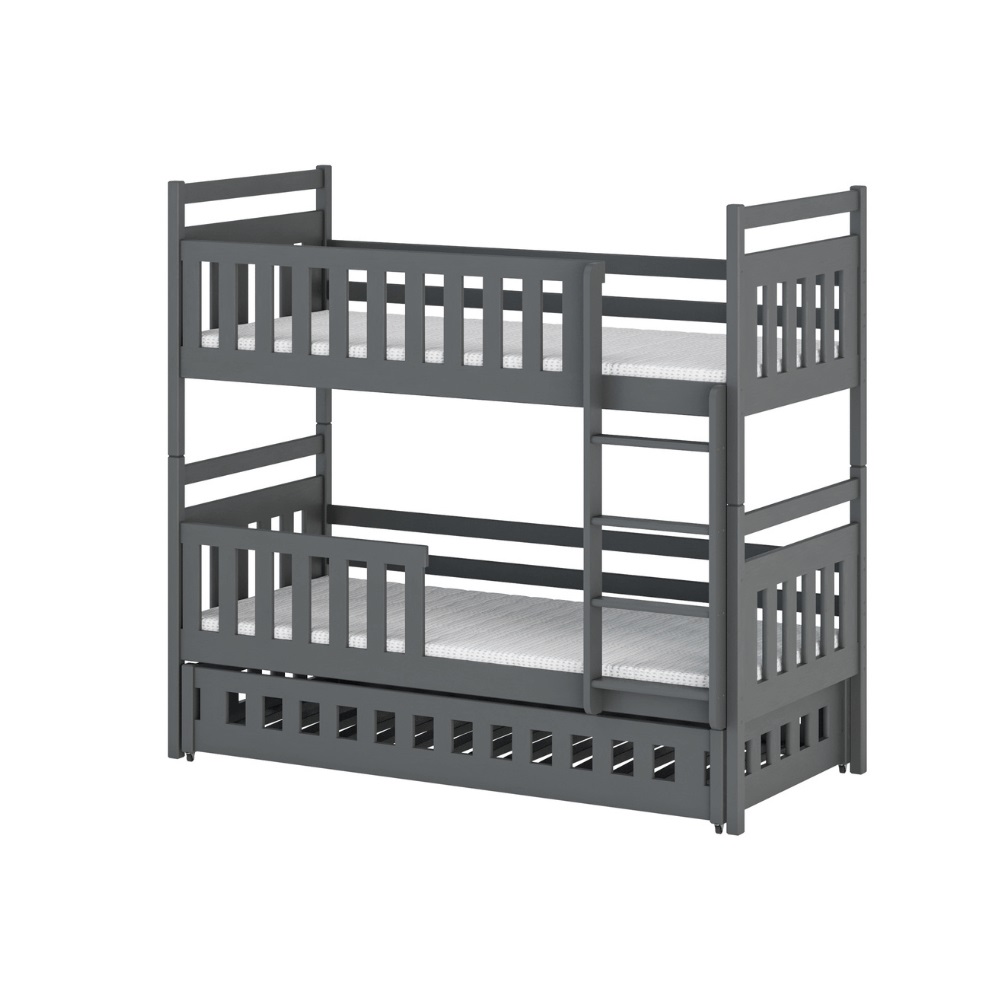 Madrasser ingår ej, men finns att köpa i vårt stora utbud! Vi rekommenderar en skummadrass med en tjocklek på 10-12 cm för den översta sängarna och max 8 cm för extrasängen. Om madrassen till extrasängen är tjockare än 8 cm kommer extrasängen inte kunna rullas ut.